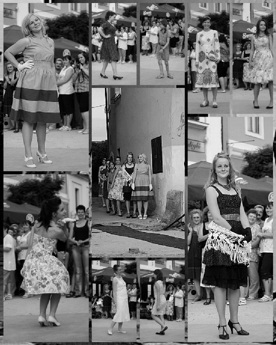 A Képtárban a Szabó család Szentendrén című kiállítás már április óta látogatható, itt csatlakoztunk a Szabódások Szentendrén programhoz. A Hammer Ferenc, Mink András, Tóth Eszter és Kende Tamás történészek részvételével meghirdetett kerekasztal-beszélgetés kötetlen hangulatban, kávé és sör mellett zajlott. A kutatók két alapvető kiállítástípust különböztettek meg: a terrort, azaz az erőszakot bemutatót, és a nosztalgikus jellegűt. Ez utóbbi a Kádár-kor Szentendrén is. A nosztalgia jellemzője, hogy "úgy emlékezünk, ahogy akarunk". A kiállítást, amelyben maguk a kutatók is helyet foglaltak, műfajilag egy önmagát elmesélő kiállításként határozták meg. A mese pedig a látogató tudatában valósul meg. Talán állításukat mi sem bizonyítja jobban, hogy a Szentendrére aggatott, vagy vállalt identitásokat bemutató kiállításból távozva önkéntelenül is felvetődik a kérdés: de mi lesz a várossal 2011-ben, vagy azután...A Fő tér (rehabilitációs) romjain szentendrei gimnazisták retro divatbemutatója akasztotta meg a forgalmat. A 60-as, 70-es éveket megidéző lányok nagy sikert arattak. Térd alá érő szoknyáikban, erős sminkben, széles mosollyal lejtettek végig a poros térre kifutóként leterített szőnyegen.
